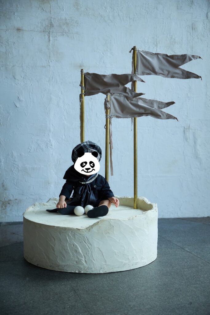 ふたつめが、スタジオと小物のおしゃれさ。サーカスのバックヤードをコンセプトとしたスタジオ背景や小物になっており、抜群におしゃれなんです。今回はファーストバースデーだったので、バースデーケーキのプロップスでどうしても撮影したくて、当日要望を伝えました。他のキッズ向けの写真スタジオと比較すると非常にシンプルで子どもにフォーカスできるのもポイントでした。背景がごちゃごちゃしていないので、自然と目立ってくるんですよね。